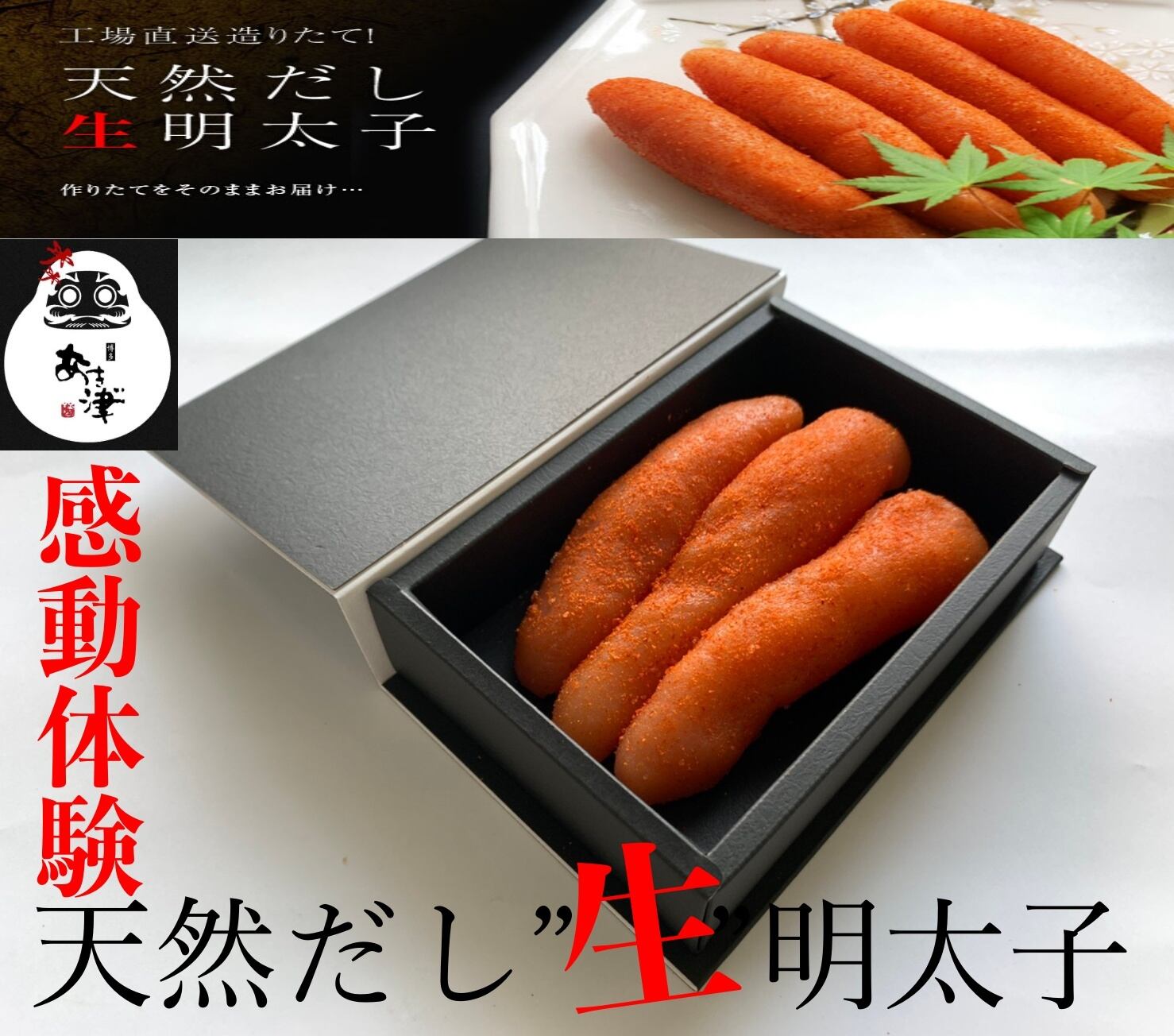 明太子は作って冷凍することが一般的ですが、あき津゛は催事で全国各地にお邪魔させて頂いている中で、作りたての明太子を工場直送で販売する「"生"明太子」を所々でご提供しておりました。